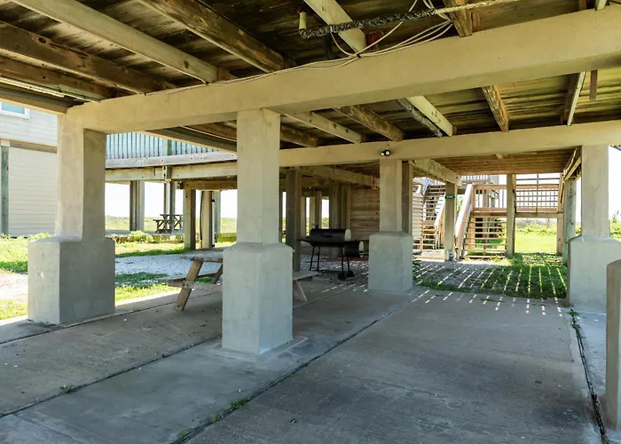 La Villa The Tiki Hut - Laid-Back A-Frame Island Vibes Surfside Beach si trova a soli 1 km dal Surfside Jetty Park e permette agli ospiti di praticare ciclismo. Dotata di un patio, la casa vacanze si trova a 15 minuti a piedi dal Parco Stahlman.